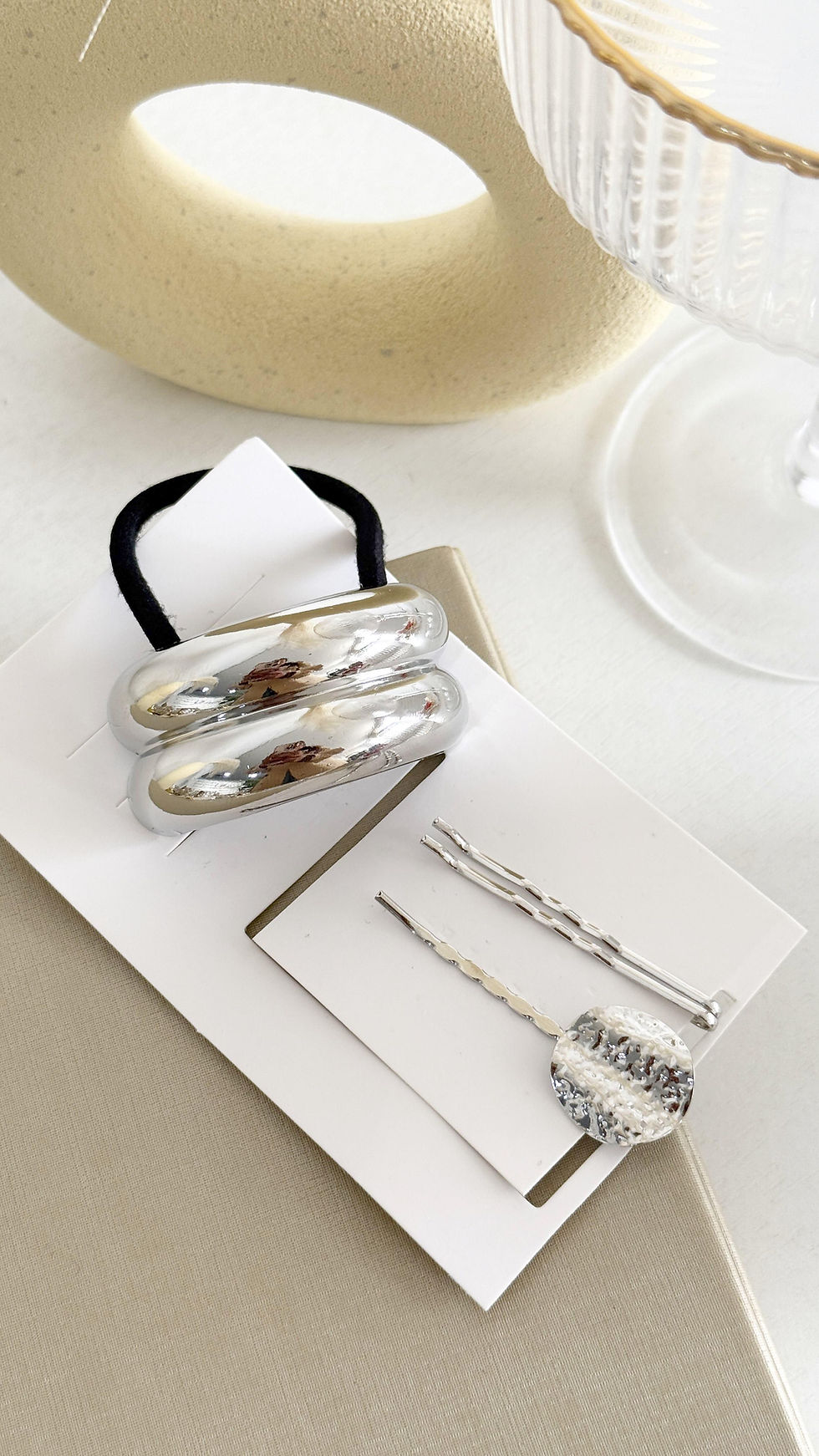 Kit Acessórios Cabelo Moderno Elástico + Presilhas Texturizadas Prata
