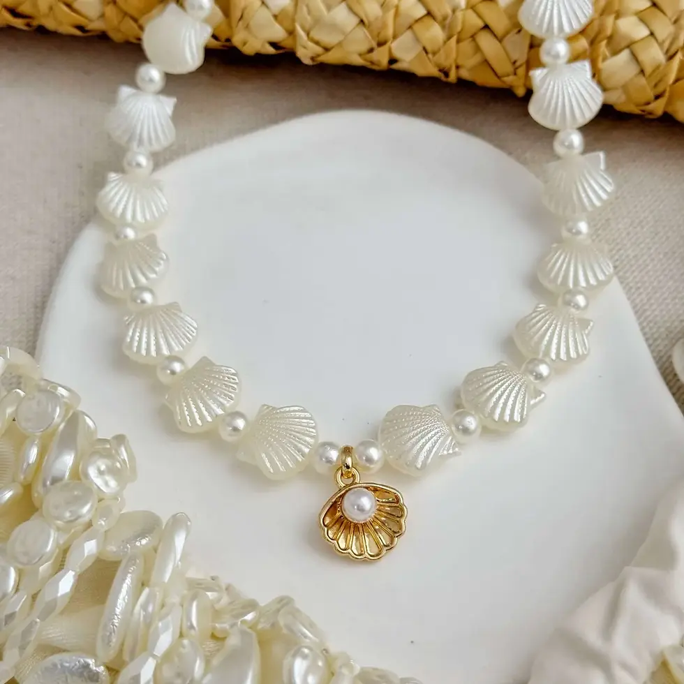 Colar Duplo Pérola com Elementos do Mar Semi Joia