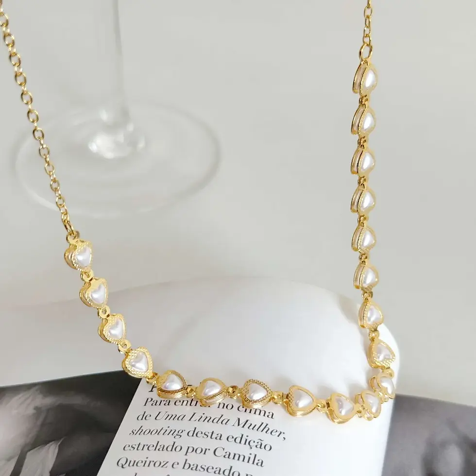 Colar Choker Coração Madrepérola Folheado a Ouro 18K